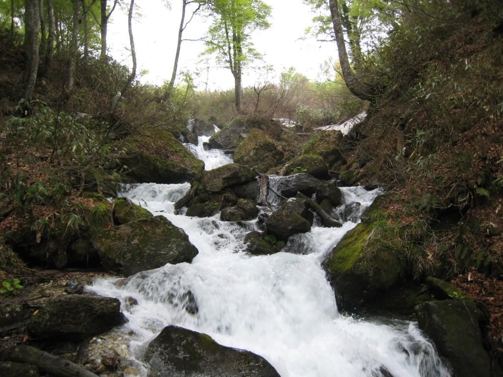 月山荘付近を流れる川を見ると、雪解けの季節だったためか