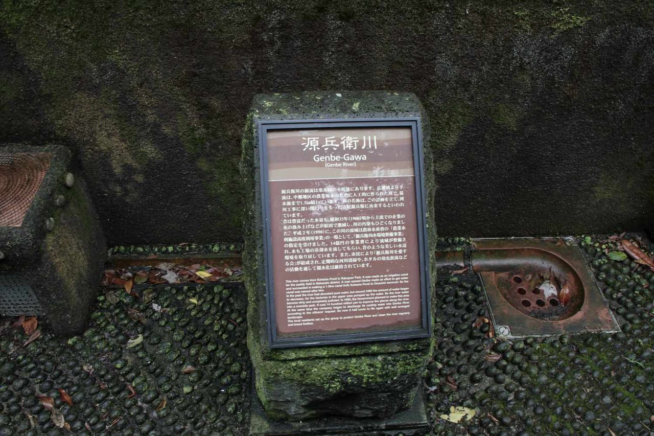 源兵衛川沿いの通路に設置された源兵衛川の看板を激写した後