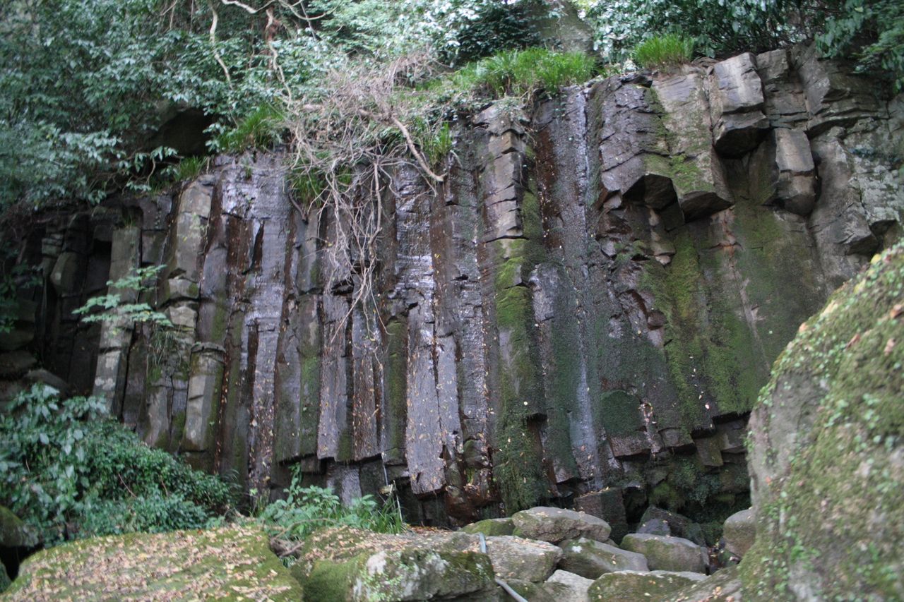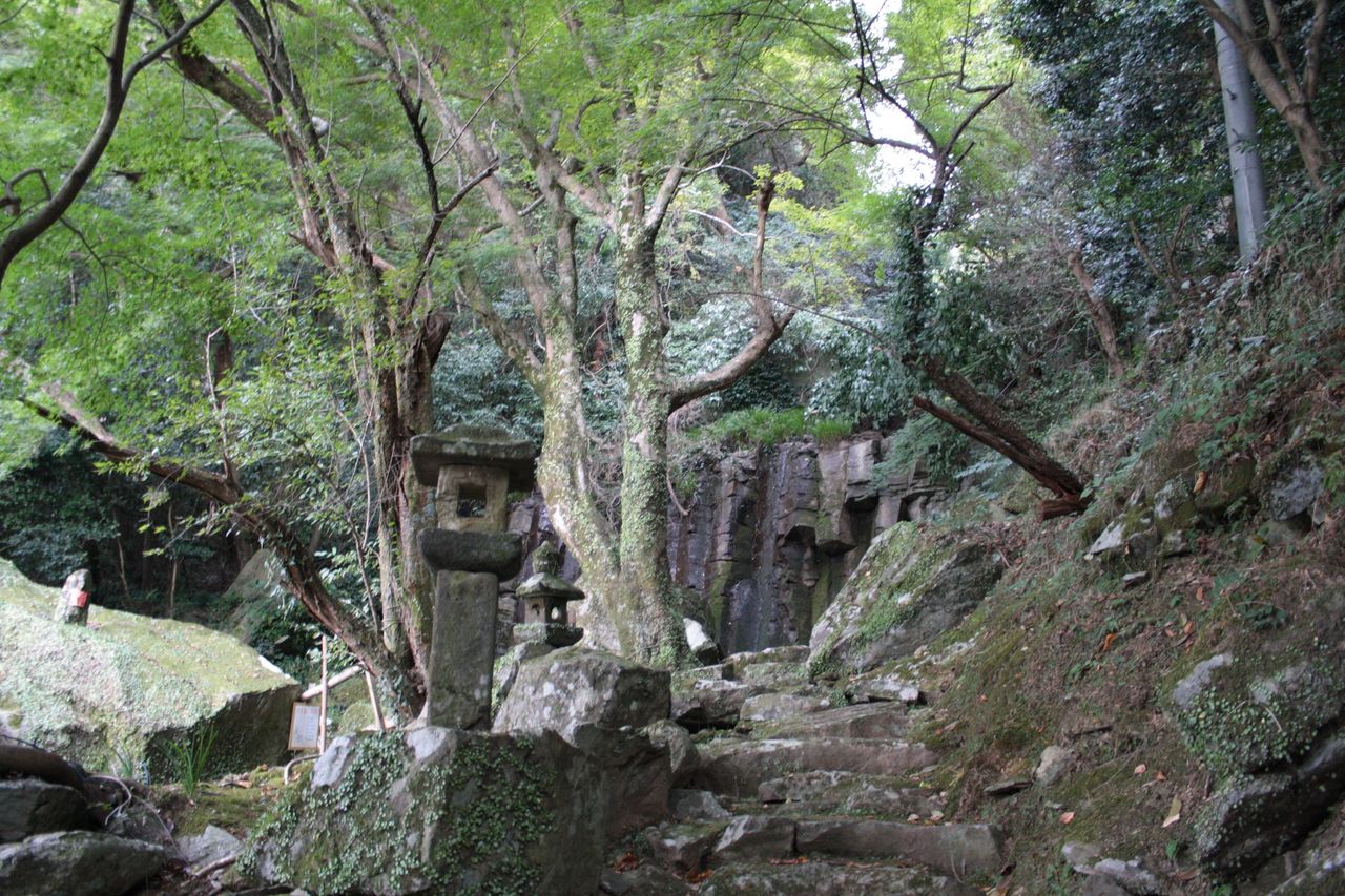 滝なのに水がちょろちょろと小川のように流れていて