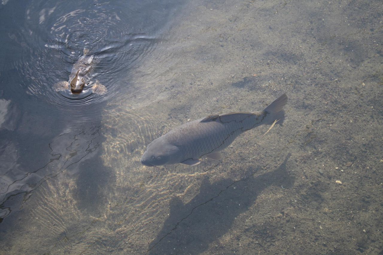 そんな水門川の中には、大きな鯉が悠々と泳いでいていました。