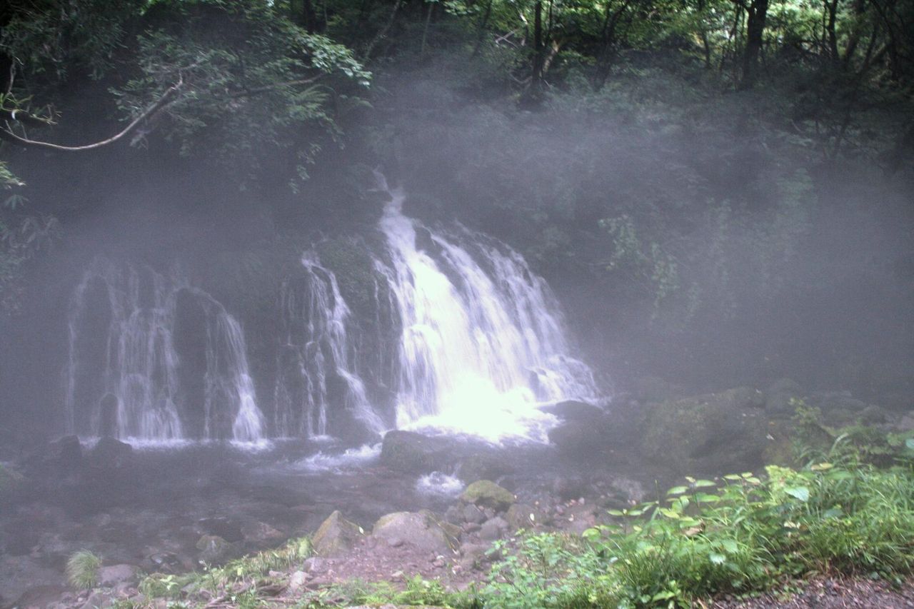 濃い霧がかかったかのように、元滝伏流水の周りは真っ白な