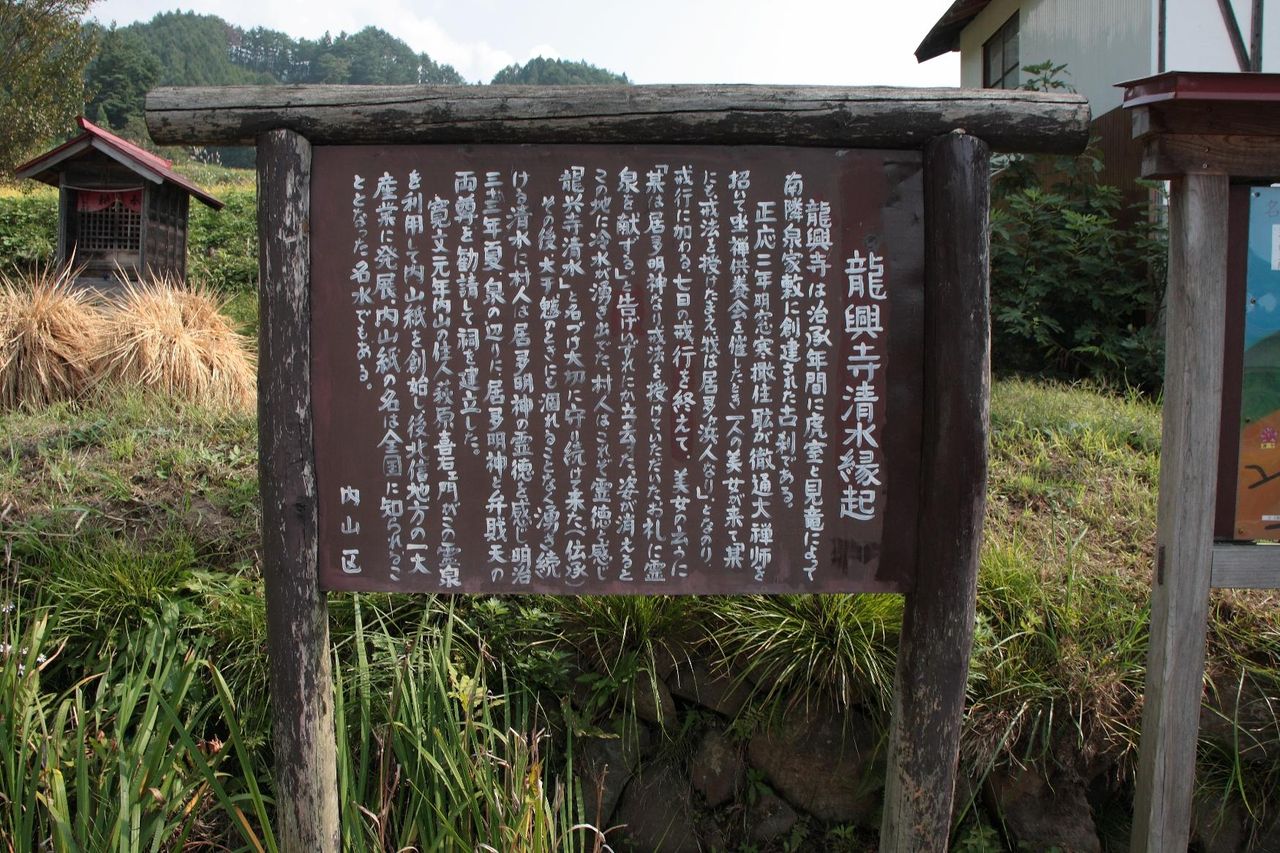 その横には、龍興寺清水の話が描かれた看板が立ち