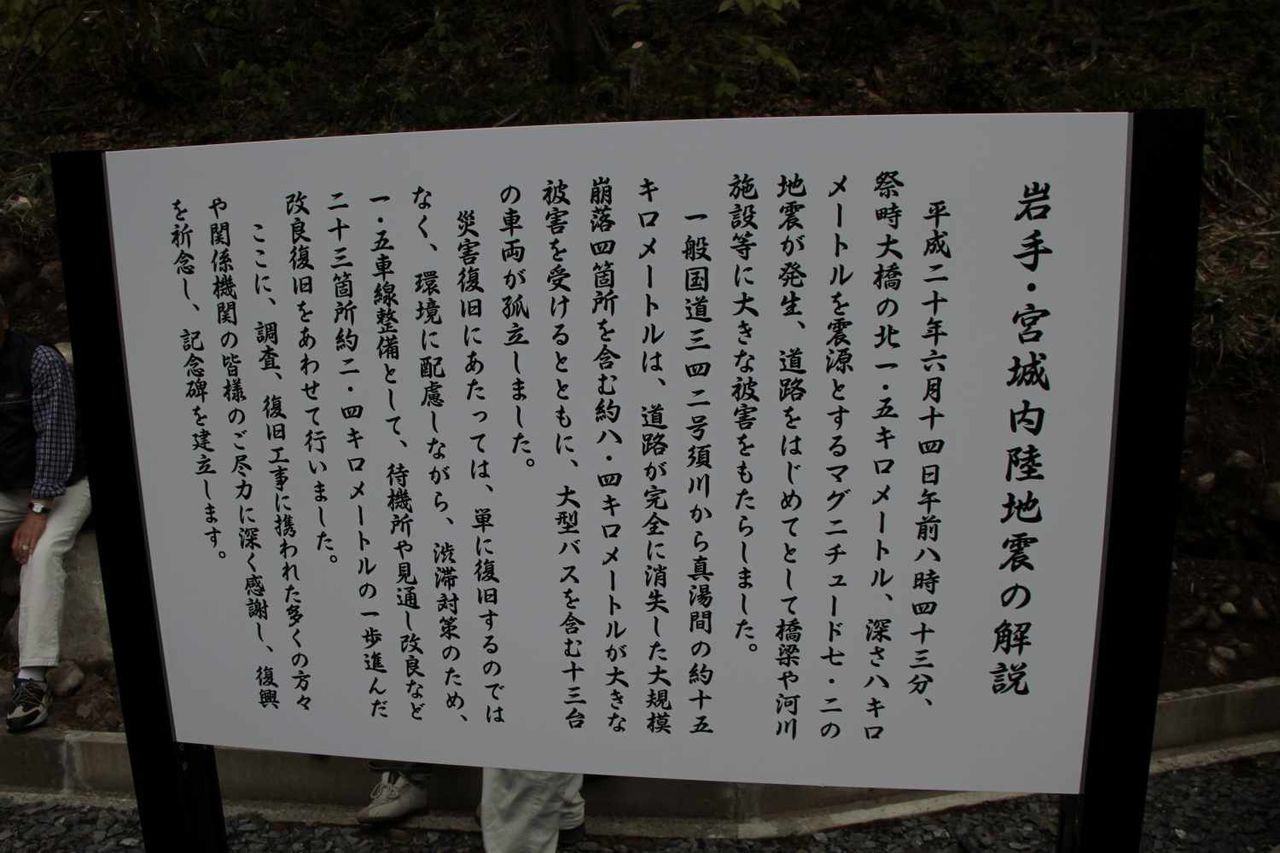 水源の側に岩手・宮城内陸地震の解説と書かれた看板があったので読んでみると