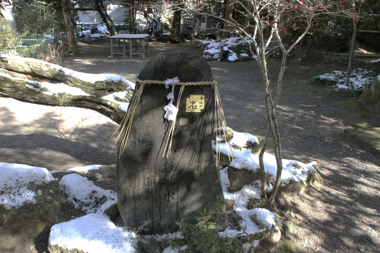 平成の名水百選に選ばれたことを示す石碑が立っており
