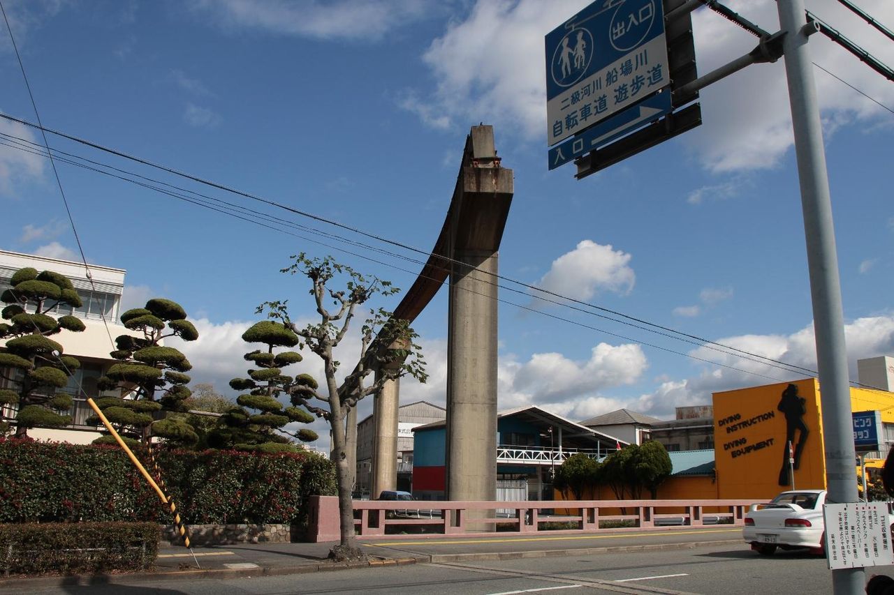 船場川沿いに到着し、そこには姫路市営モノレール跡があり