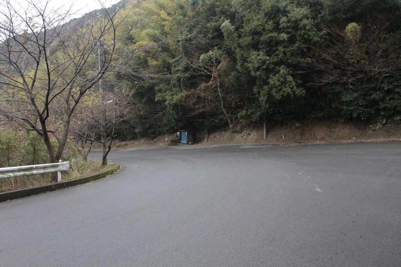 最寄りバス停の入来峠バス停から、起伏の激しい山道をしばし進み