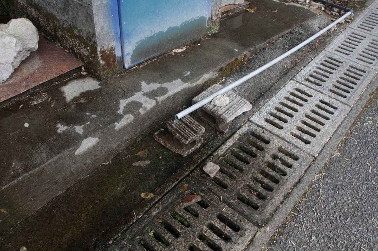 八重の雫と書かれた小屋の下の二箇所のパイプから