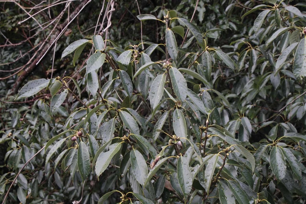 ドングリの枝がせり出す道を抜けると、先程発見した八重の雫の前に到着です。