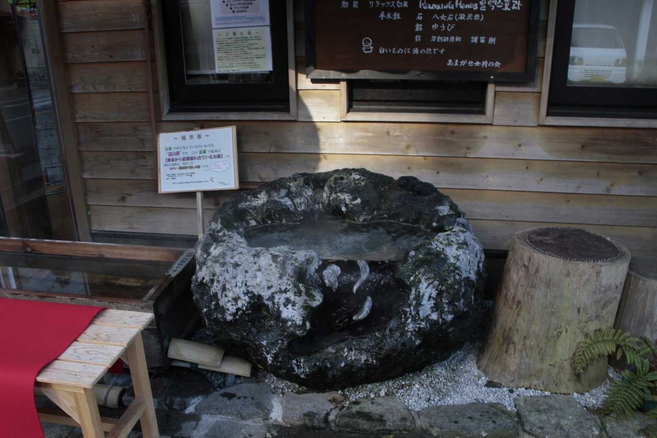 手桶鉢の暖かい温泉水を堪能した後は