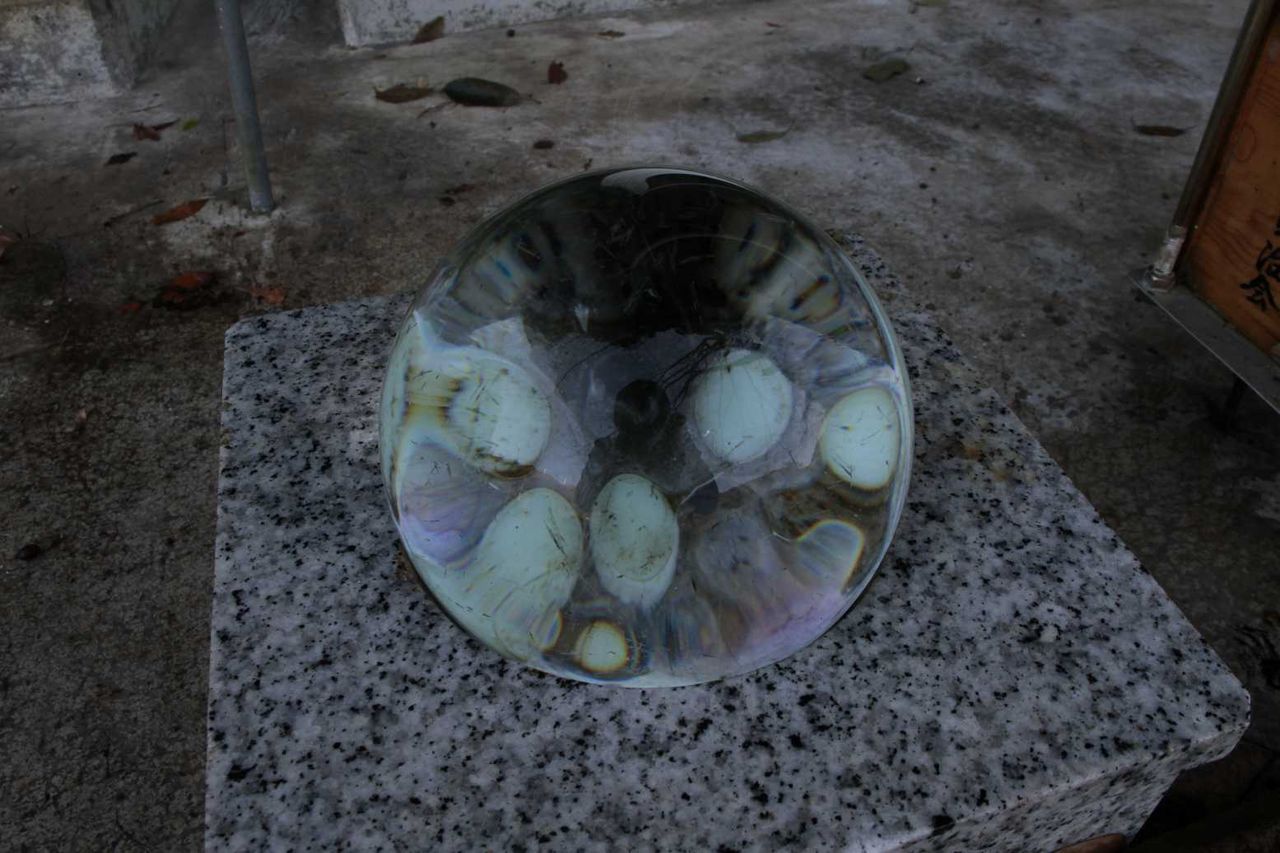 その像に水をたらすと、玉の中がすっきりと見れる仕掛けが施されています。