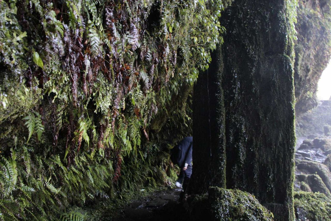 滝の裏から苔むす順路を更に奥へと進み