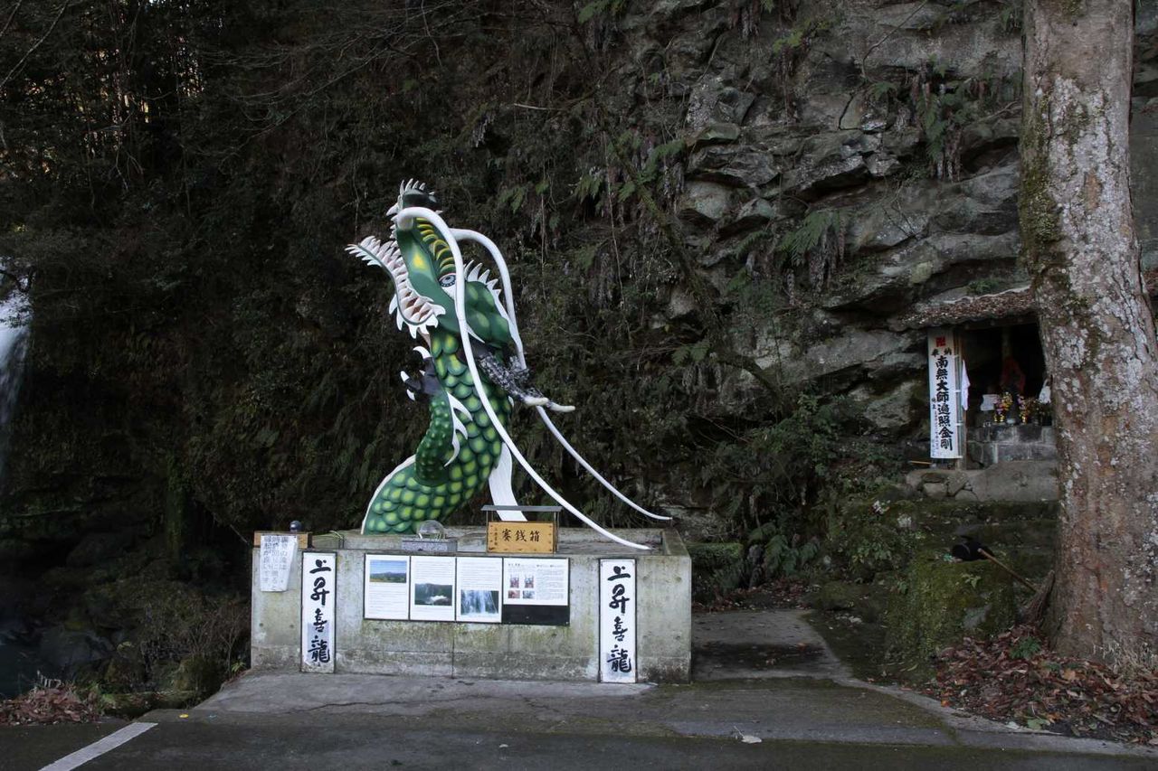 裏見の滝を堪能するための通路を出た後、目の前に竜の像があり