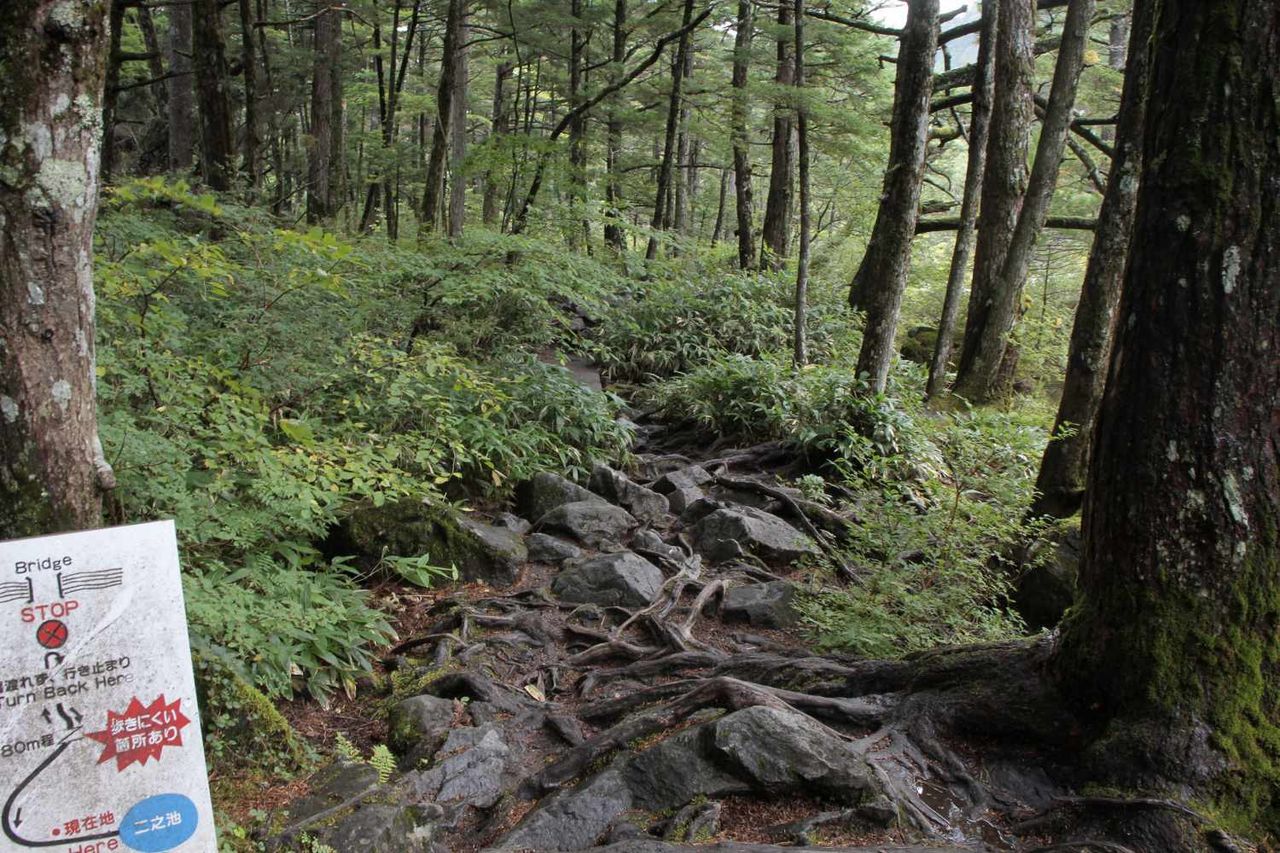 明神池の淵から明神池の奥へと続く順路を進んでいくと