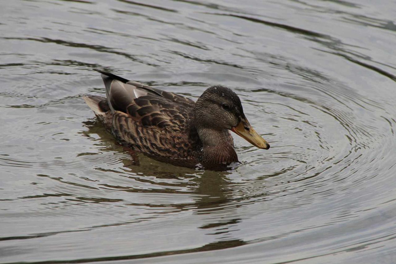 それにあわせてカルガモ達が池の上を縫うように水の中を啄んでいました。