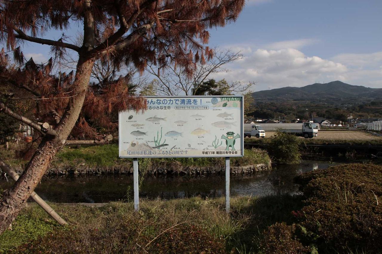 ここから湧き出した水が流れる、尾田川に住む魚が書かれた看板がありました。