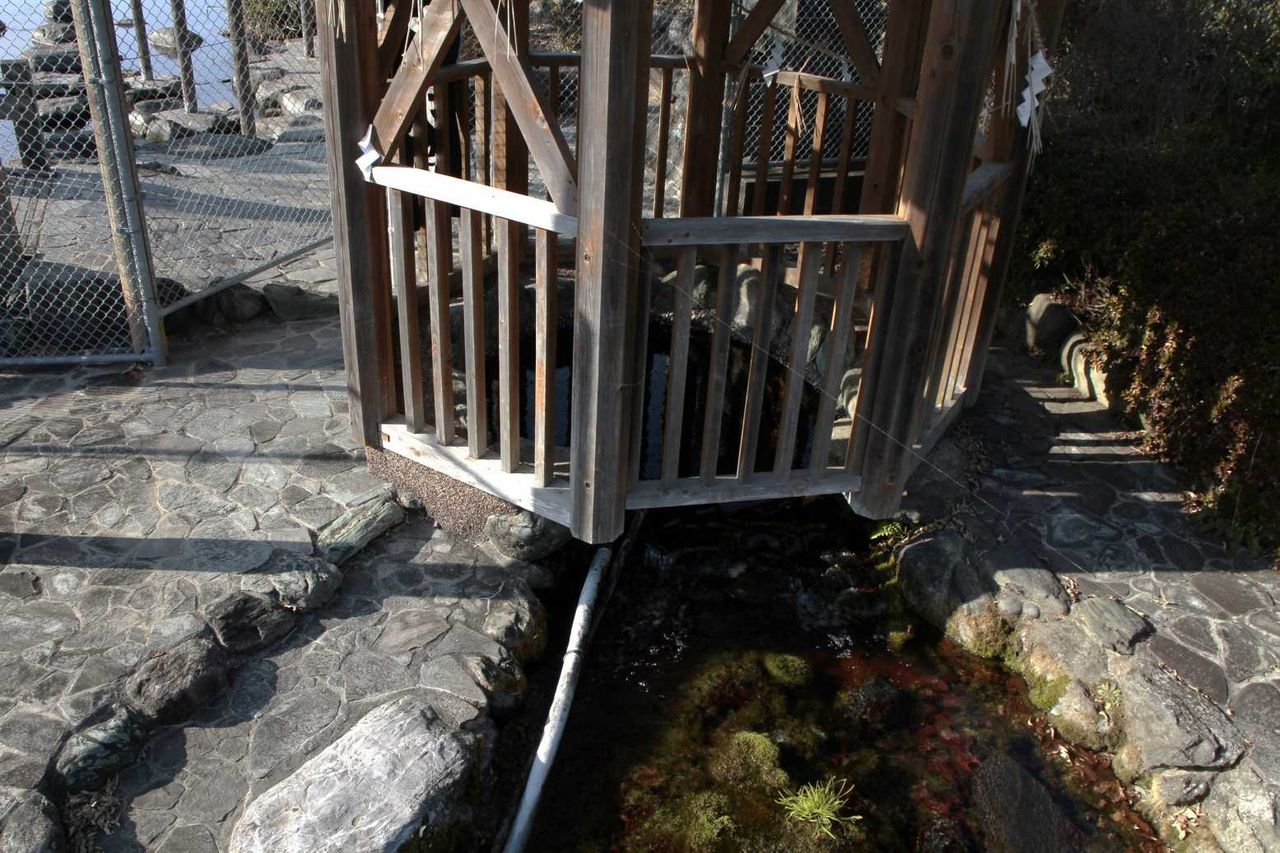 源泉部は、写真のようにがっちり木で囲われている事や