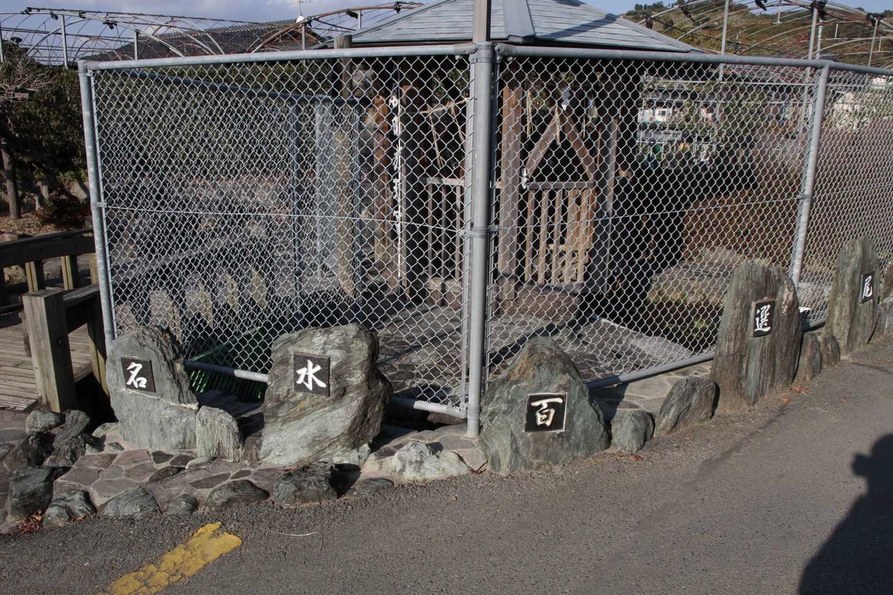 尾田の丸池の源泉見学後、尾田の丸池の水飲み場へと戻ると