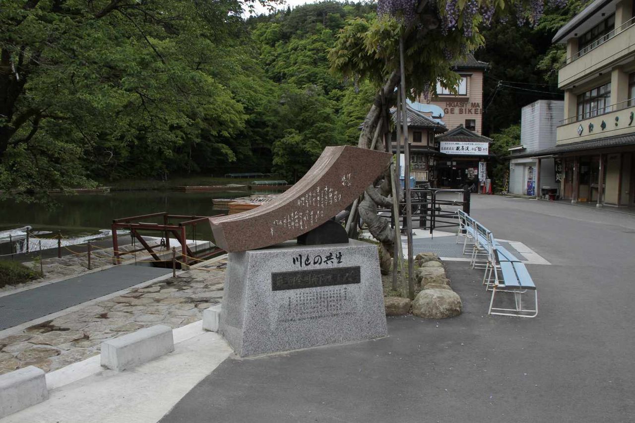 猊鼻渓駅から一ノ関駅へと向かう汽車の時刻を確認後、猊鼻渓前の船着き場を後にしました。
