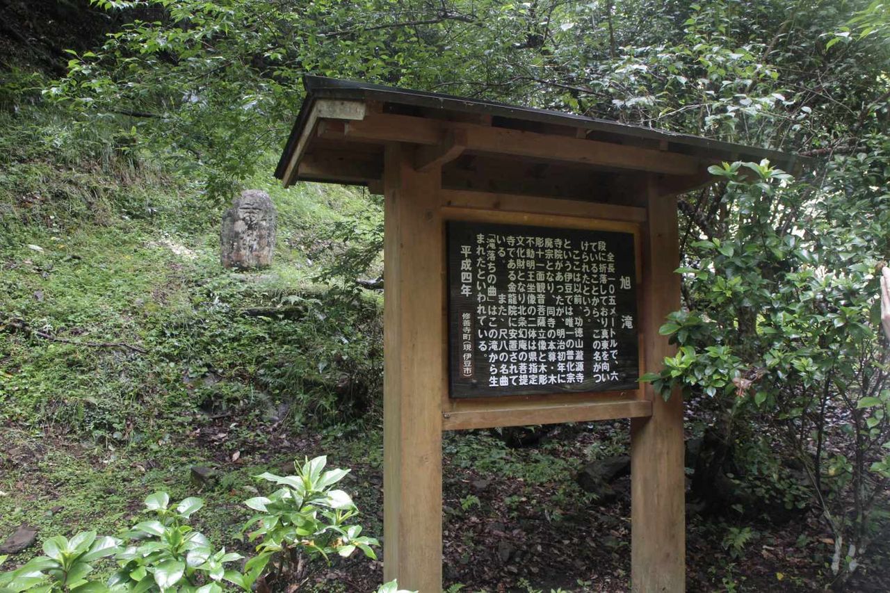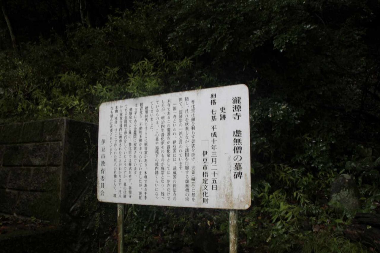 滝上の方へと続く坂道をしばらく進み、道の中腹部分に虚無僧の墓碑と呼ばれる場所があり