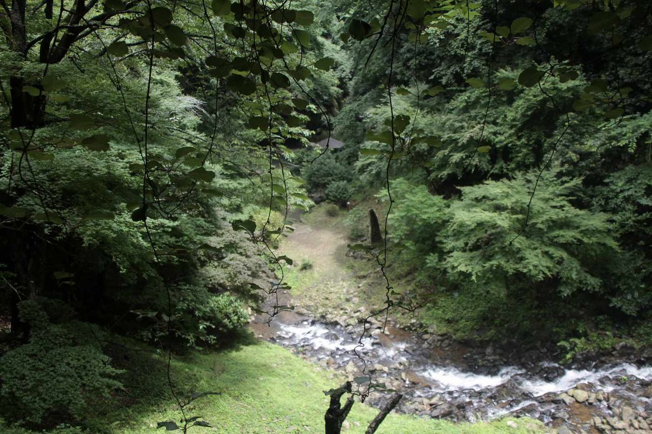 滝の下から見るよりも、上から落ちるように流れる水の音や