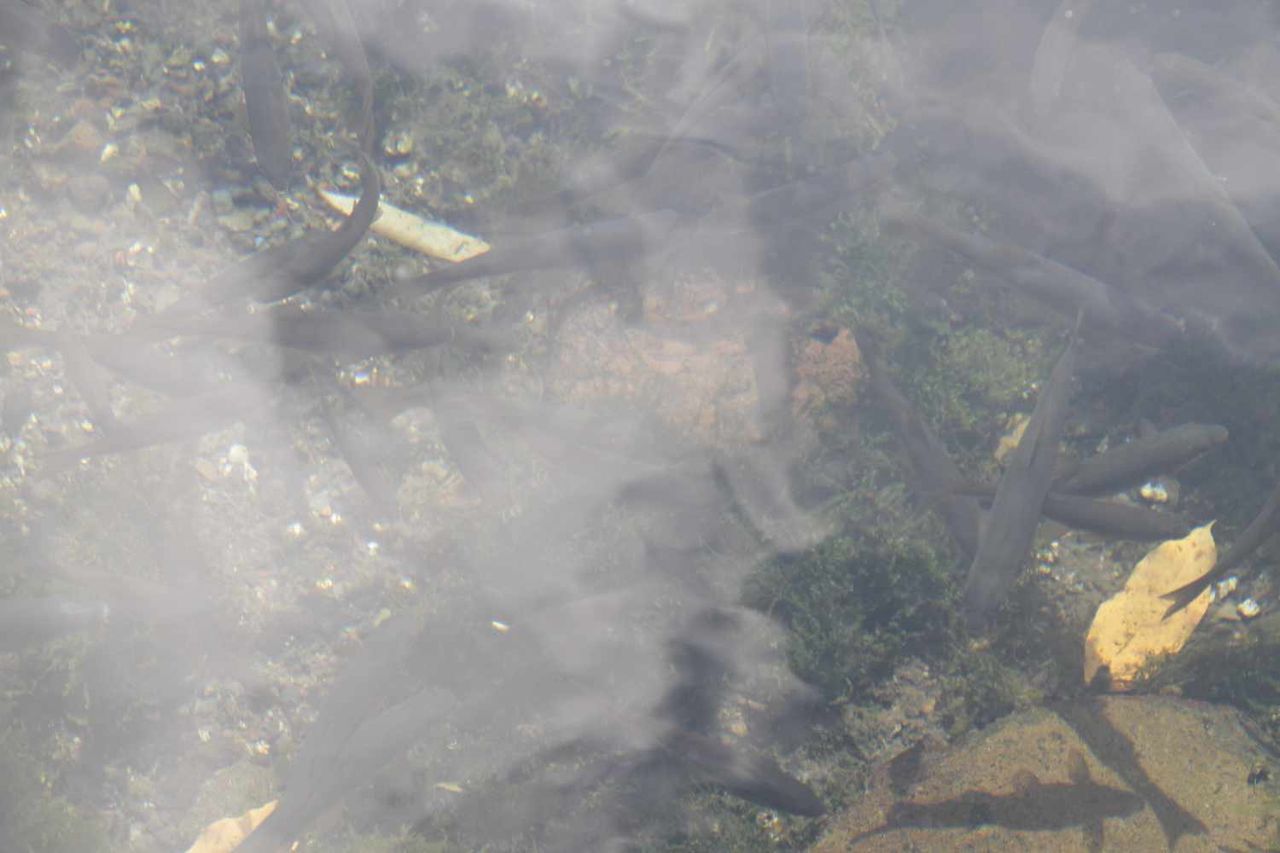 沢山の魚がきれいな水の中で勢い良く泳いでいました。