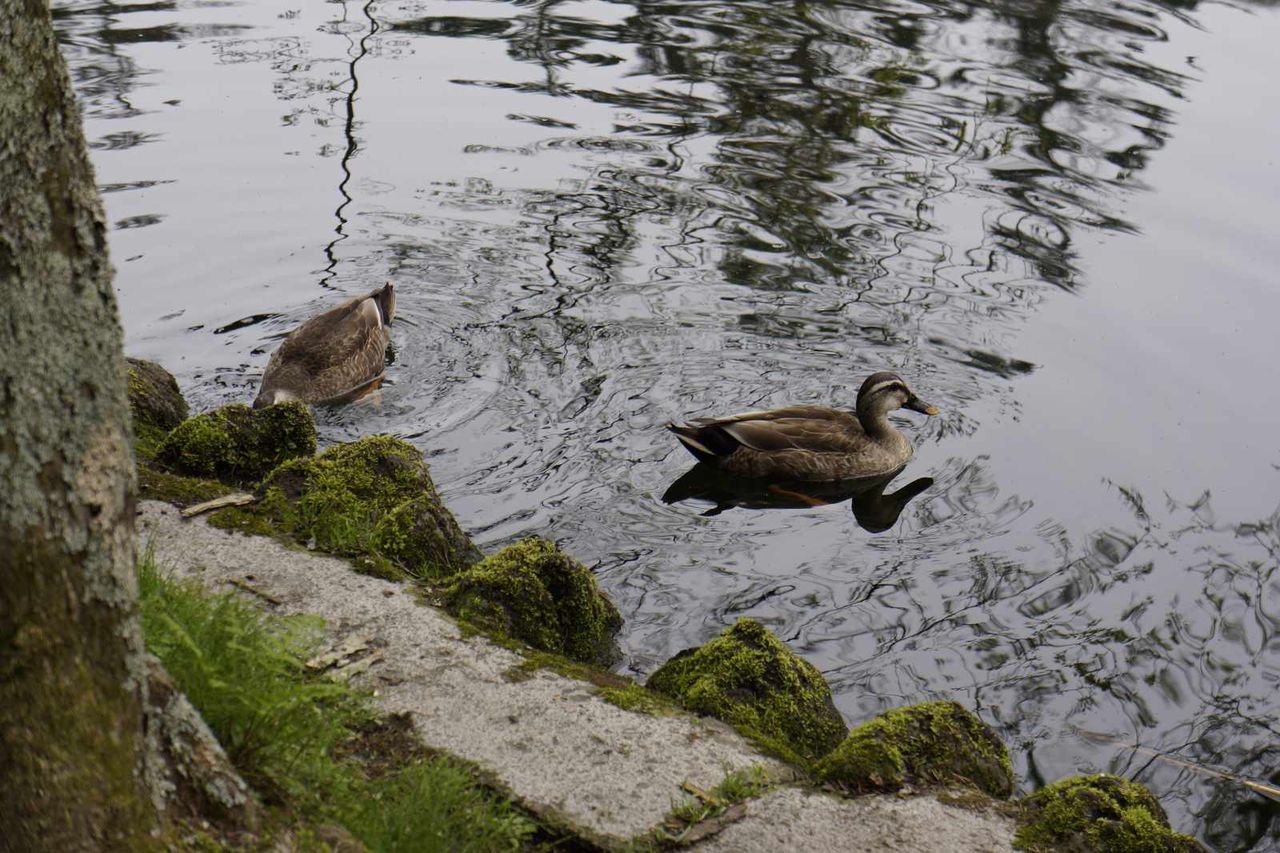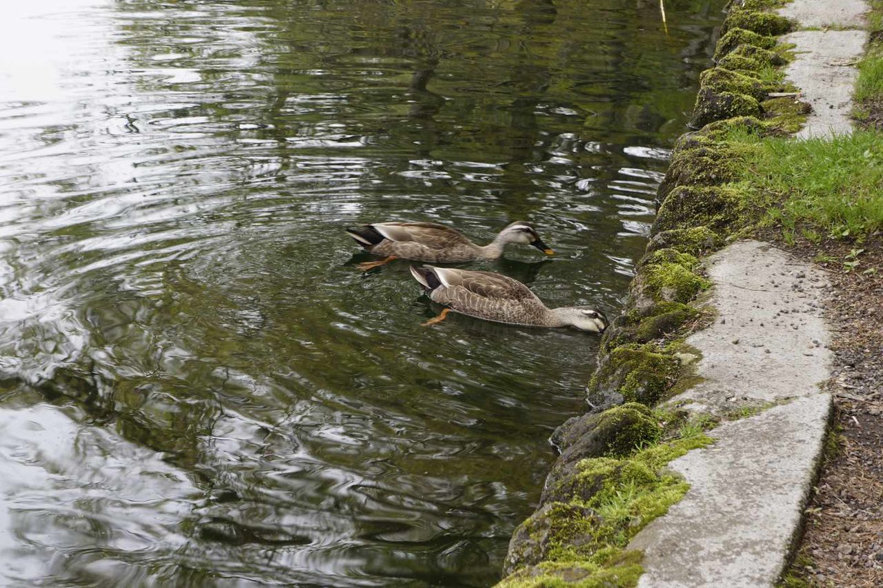 池の中では鴨が美味しそうに食事を行なっていました。