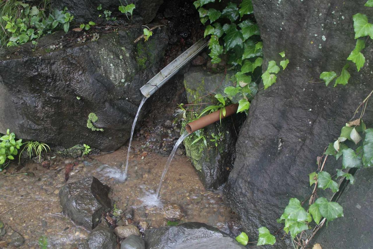 崖下湧水は先日からの雨が降り続いていた事によって水量は豊富ですが