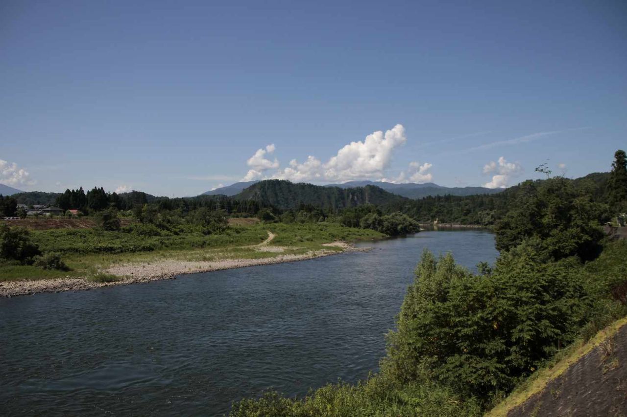 この日の阿賀野川は青々と澄んだ水が勢い良く流れ、台風直後のような時期でないのに