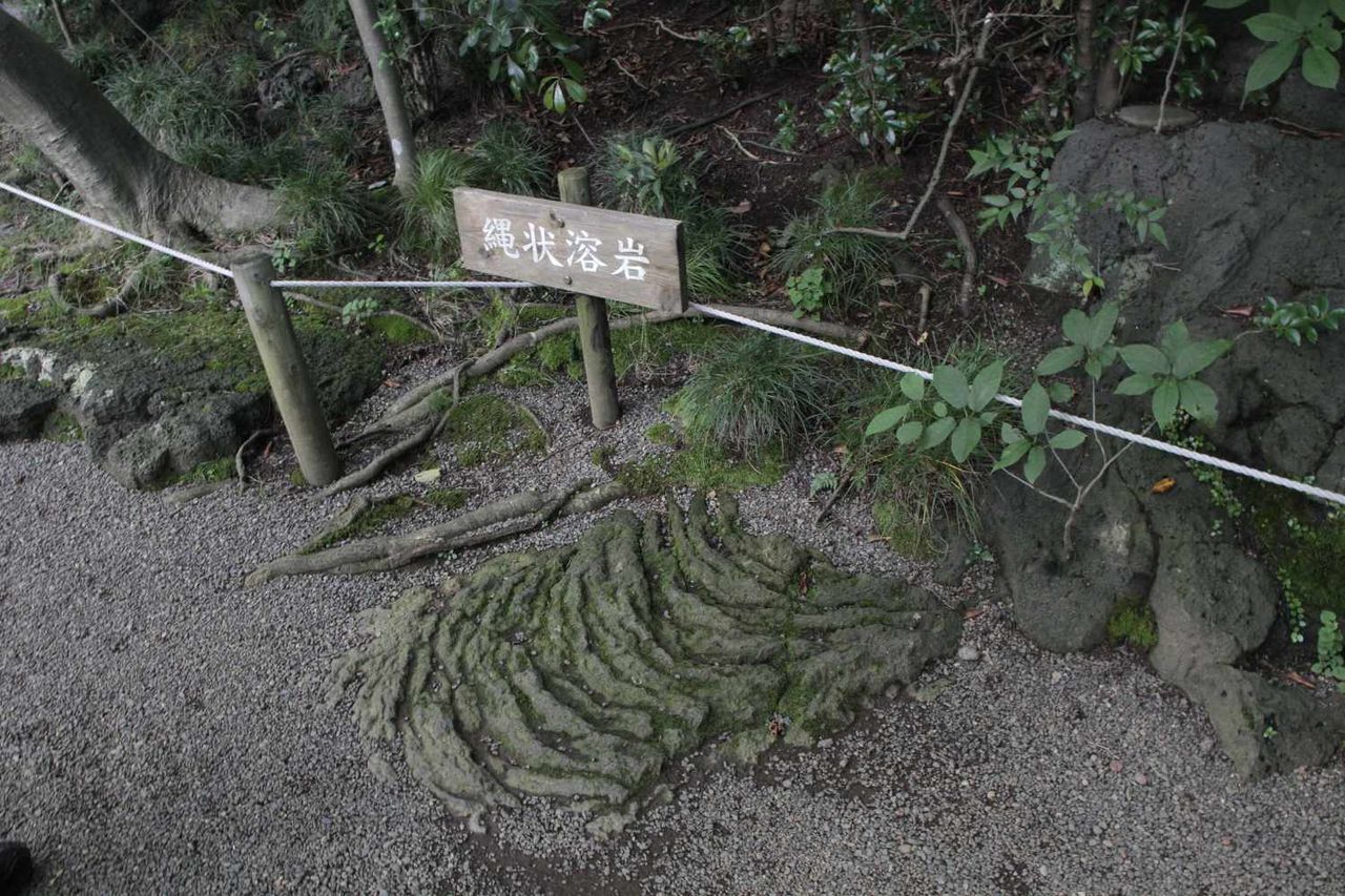 楽寿園の中を歩いていると、下記写真のような縄状溶岩を含め