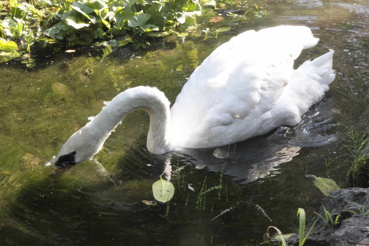 楽寿園内の池にはなぜか時期外れの白鳥が生息していました。