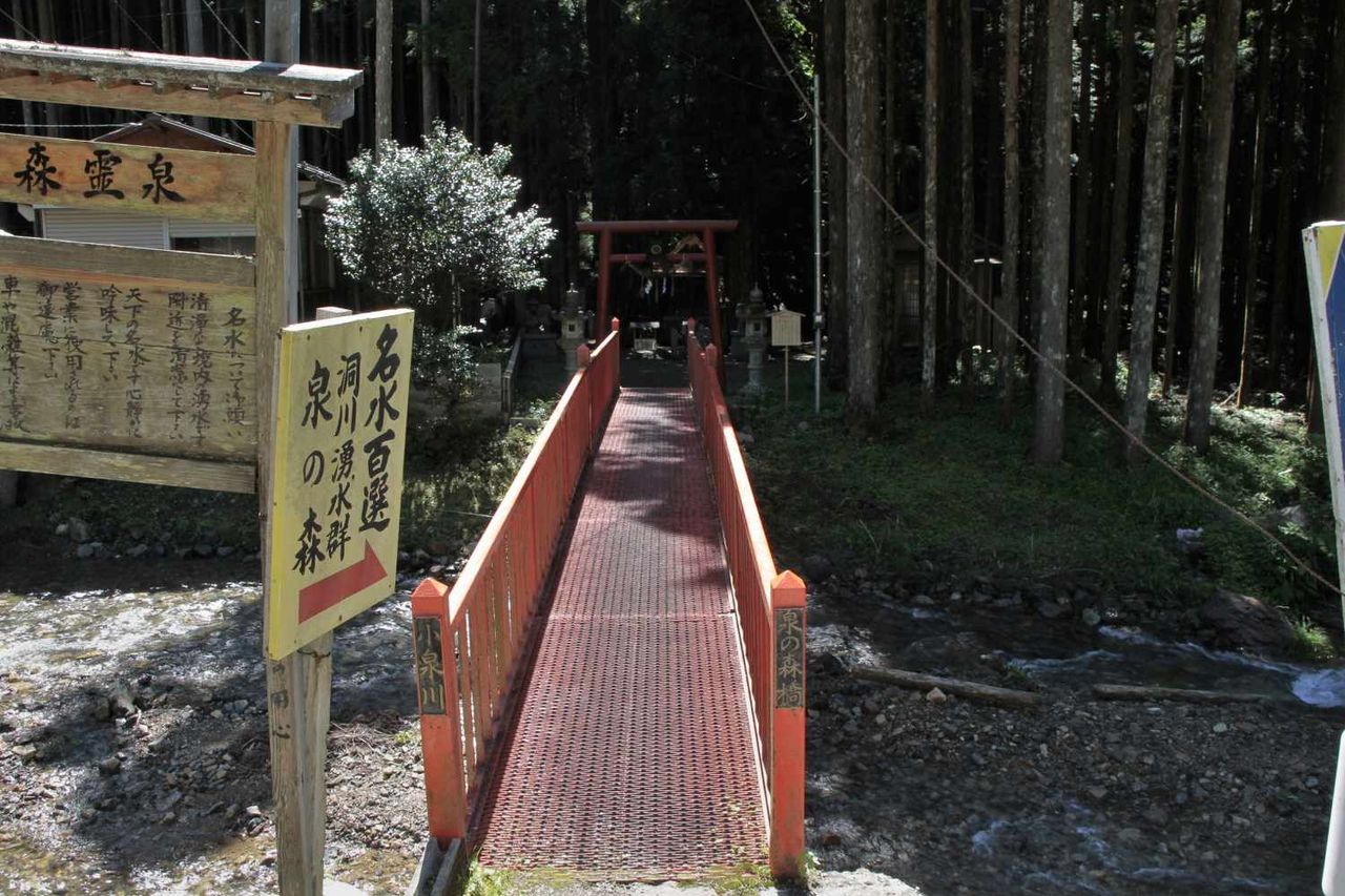 泉の森へは今まで歩いてきた道路と水源の間を流れる小泉川の間を渡す小さな橋を渡り