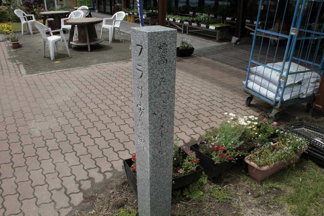 安曇野の里付近の標高を記した石柱が立っていたので見てみると、標高が528mとあり
