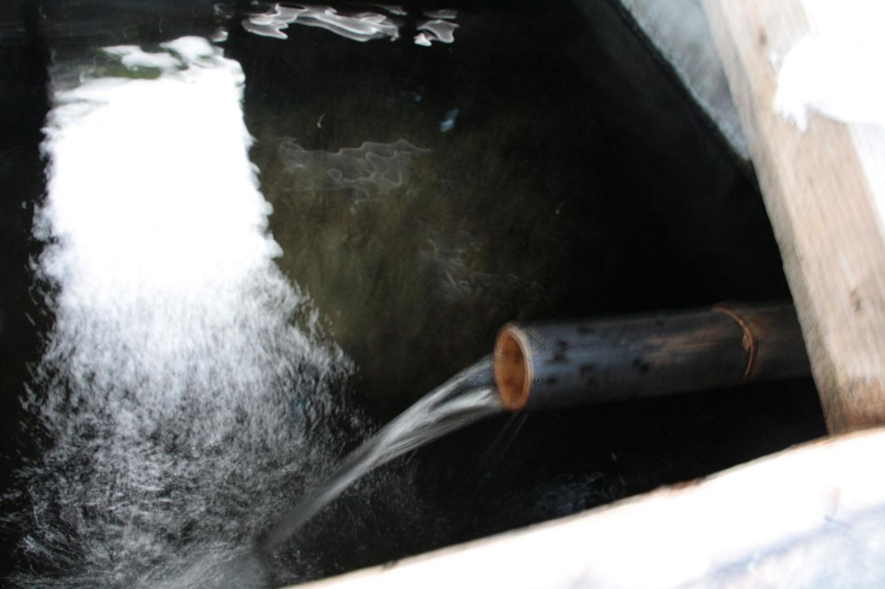 その奥の竹筒から清涼な青龍水が勢い良く流れだしています。
