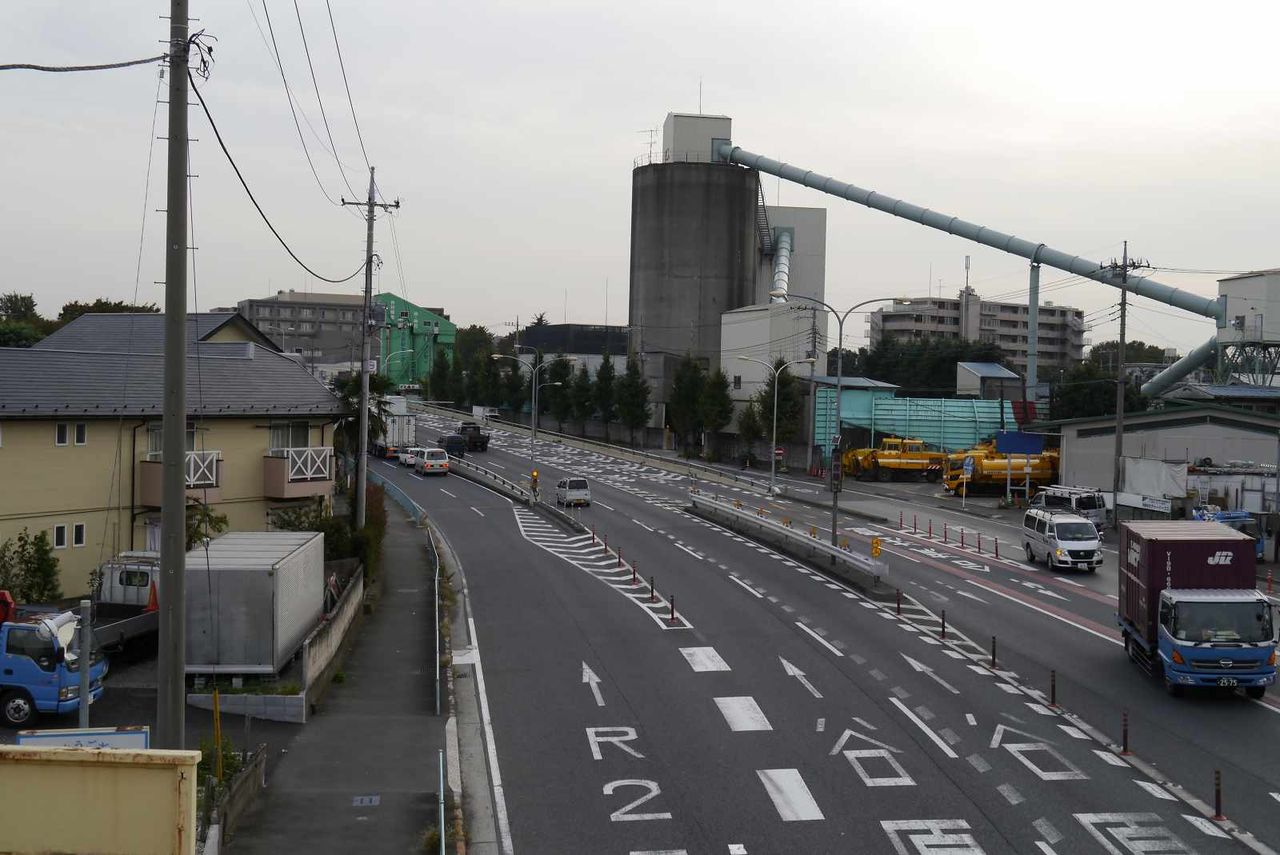 各種マンションや工場などが広がり、ゴミゴミとした印象の谷底近くと比べて