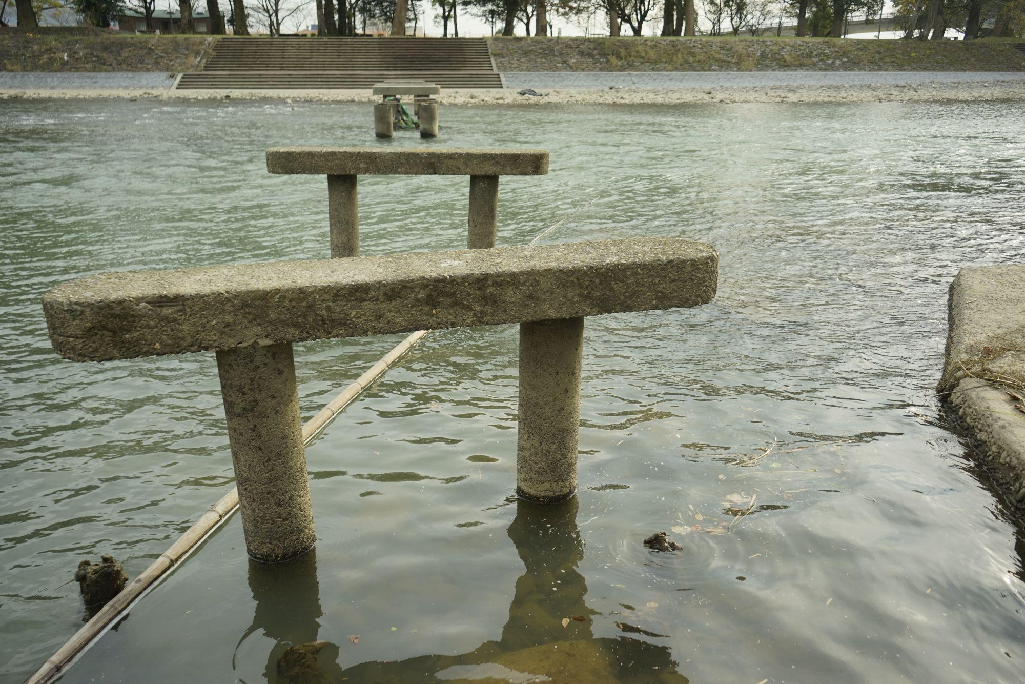 しばしこの場より左側を流れる水面や