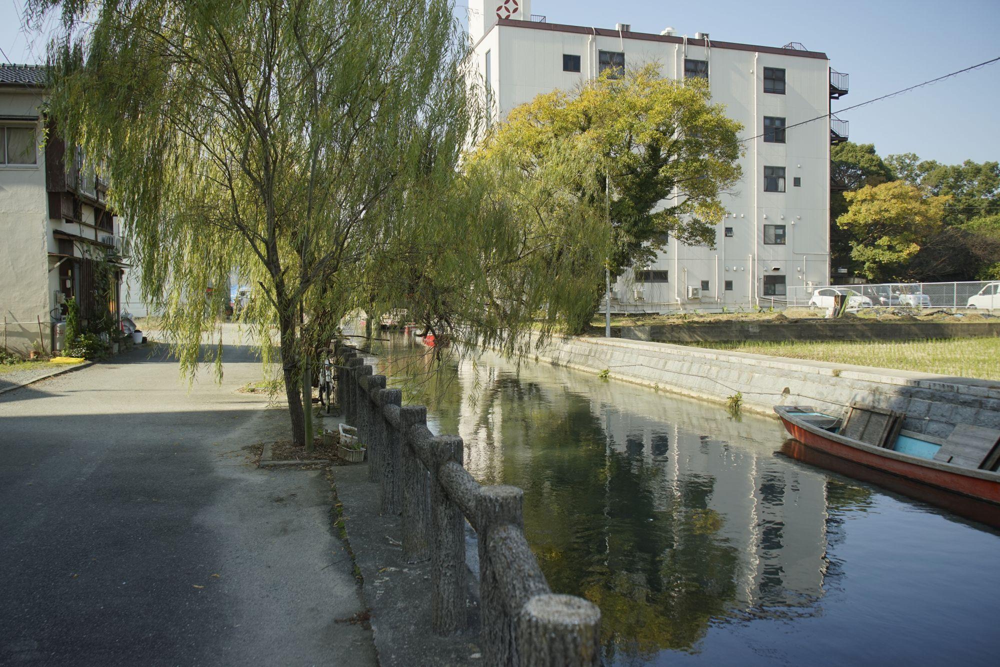 柳川市なだけあって、柳の木を街路樹にした川辺をしばし進んでいきます。